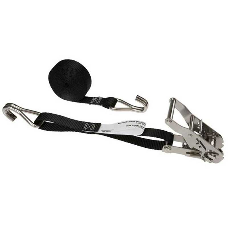 1" X 10' బ్లాక్ రాట్చెట్ స్ట్రాప్ W/ వైర్ హుక్స్తో స్టెయిన్లెస్ స్టీల్ రాట్చెట్