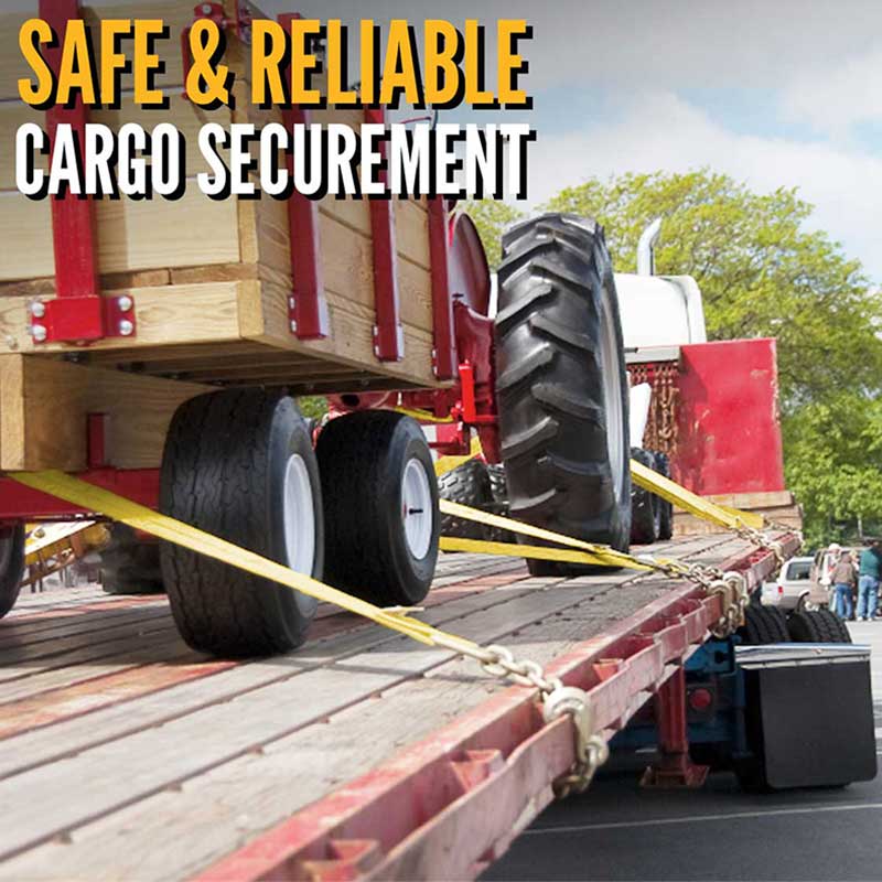 పరిశ్రమ వర్తింపు మరియు భద్రత ఫోర్స్ 3 X 30' ఎల్లో రాట్చెట్ స్ట్రాప్ విత్ చైన్ ఎక్స్టెన్షన్స్తో సహా మా అన్ని రాట్చెట్ స్ట్రాప్లు, FMCSA మరియు DOT నిబంధనలు, CVSA మరియు WSTDA మార్గదర్శకాలు మరియు నార్త్ అమెరికన్ కార్గో సెక్యూరిటీ ప్రమాణాలకు అనుగుణంగా వాటి బ్రేక్ స్ట్రెంగ్త్ మరియు వర్కింగ్ లోడ్ లిమిట్తో ట్యాగ్ చేయబడ్డాయి మరియు స్టెన్సిల్ చేయబడ్డాయి. . ఈ ప్రమాణాలకు కట్టుబడి ఉండటం ద్వారా, మీ కార్గో మరియు దానిని నిర్వహించే వారి భద్రతను మేము నిర్ధారిస్తాము.