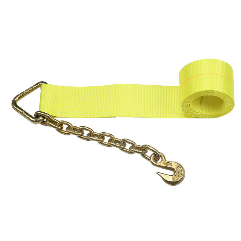 చైన్ ఎక్స్టెన్షన్తో కూడిన మా 4INCH వించ్ స్ట్రాప్ ఫ్లాట్బెడ్ ట్రక్కులు మరియు ట్రాక్టర్ ట్రైలర్ హక్కులతో ఉపయోగించడానికి రూపొందించబడింది మరియు మీ లోడ్ను సులభంగా నిర్వహించగల సామర్థ్యాన్ని అందిస్తుంది. ఈ 4" వించ్ టై డౌన్ అమెరికన్ మేడ్ వెబ్బింగ్, హుక్తో కూడిన హెవీ డ్యూటీ చైన్ ఎక్స్టెన్షన్ మరియు టాప్ నాచ్ హార్డ్వేర్తో అసెంబుల్ చేయబడింది, తద్వారా మీరు మీ కార్గోను ఎక్కువ కాలం నమ్మకంగా భద్రపరచవచ్చు.